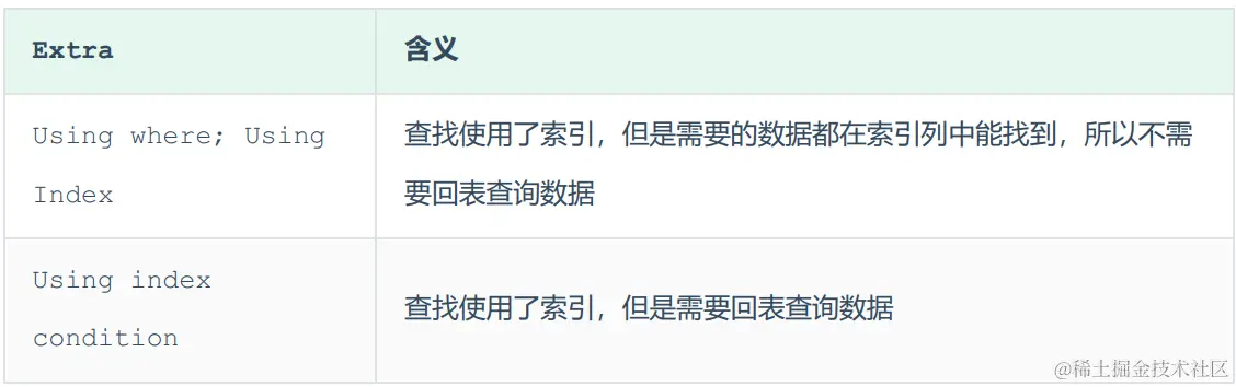 - 当你发现执行计划里的Extra部分显示了"Using index condition",说明使用了索引下推!