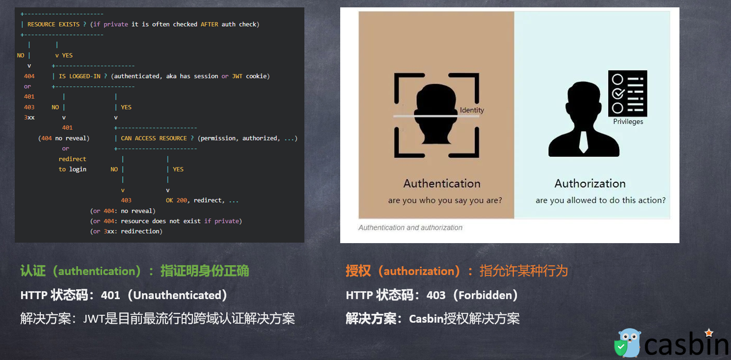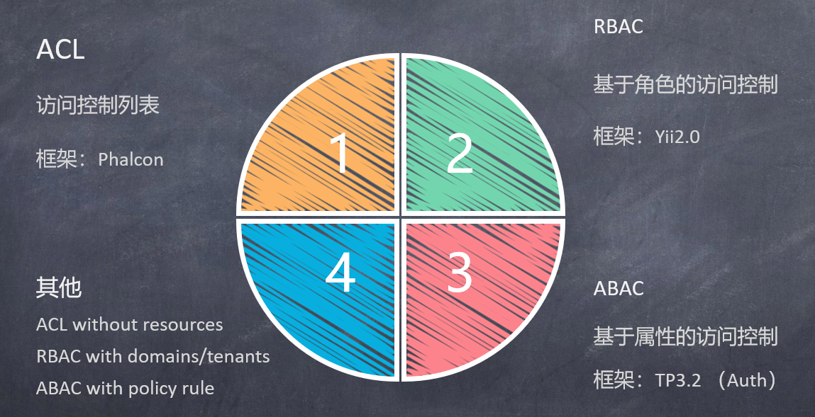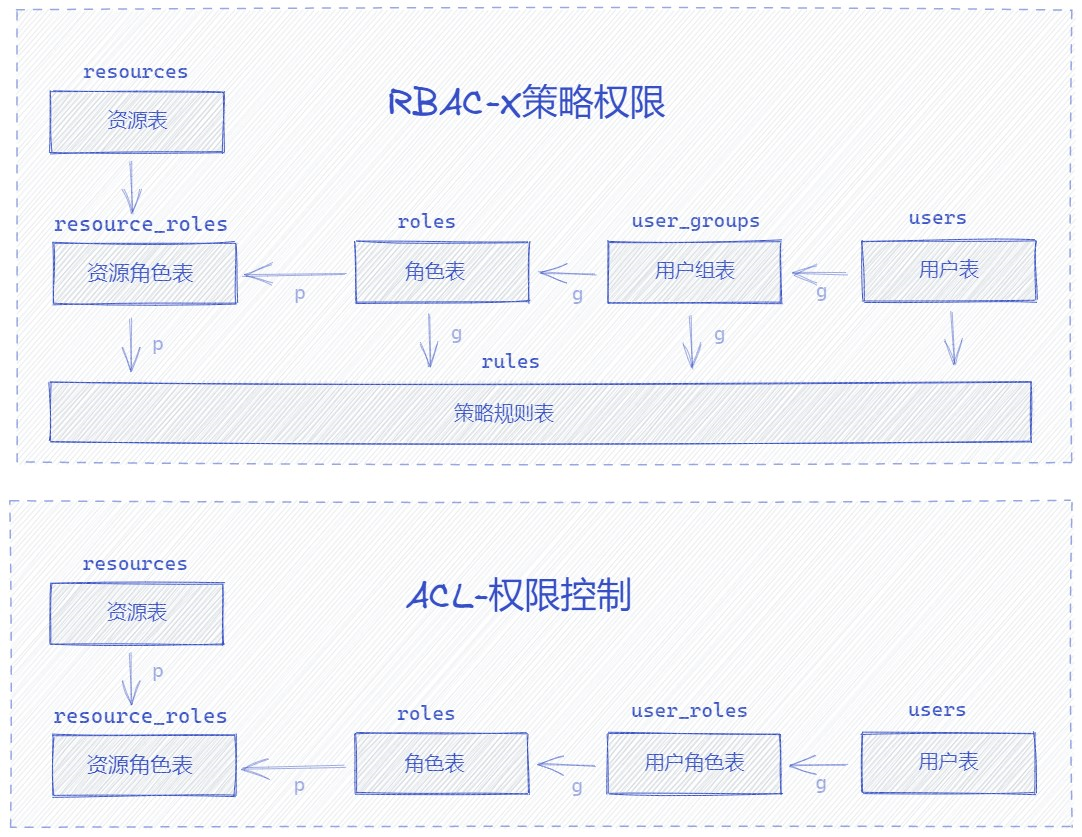 ACL (Access Control List)访问控制列表具有 超级用户的 ACL没有用户的 ACL: 对于没有身份验证或用户登录的系统尤其有用。没有资源的 ACL: 某些场景可能只针对资源的类型, 而不是单个资源, 诸如 write-article, read-log等权限。 它不控制对特定文章或日志的访问。RBAC (基于角色的访问控制)支持资源角色的RBAC: 用户和资源可以同时具有角色 (或组)。支持域/租户的RBAC: 用户可以为不同的域/租户设置不同的角色集。ABAC (基于属性的访问控制): 支持利用resource.Owner这种语法糖获取元素的属性。RESTful: 支持路径, 如/res/*,/res/:id和HTTP方法,如GET,POST,PUT,DELETE。拒绝优先: 支持允许和拒绝授权, 拒绝优先于允许。优先级: 策略规则按照先后次序确定优先级,类似于防火墙规则。