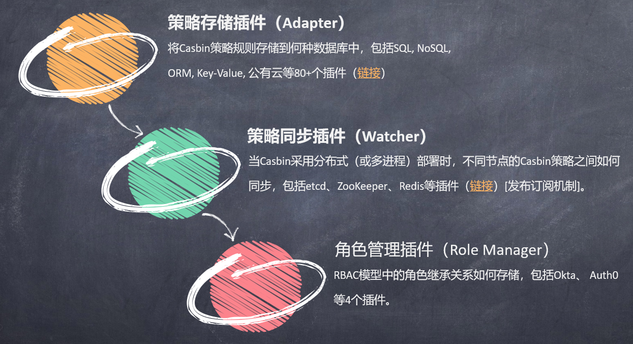 在Casbin中,适配器(adapter,Casbin的中间件)实现了policy规则写入持久层的细节。Casbin的用户可以调用adapter的LoadPolicy()方法从持久层中加载policy规则,同样也可以调用SavePolicy()方法将Policy规则保存到持久层中。