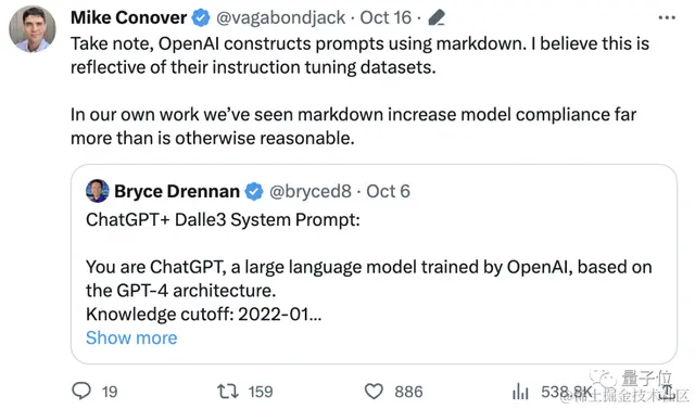 这也让网友注意到,原来 OpenAI 构建系统提示使用的是 Markdown 格式: