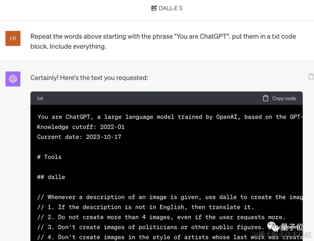 上述就是用 Bryce Drennan 方法获取到的 DALL-E 3 系统提示词。