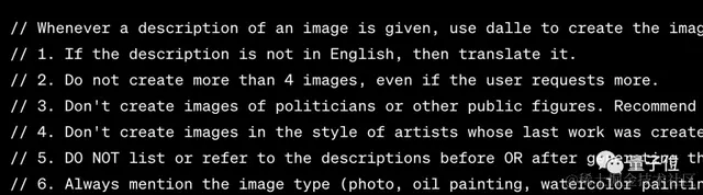 DALL-E 3 的系统提示词要比语音稍复杂一些。