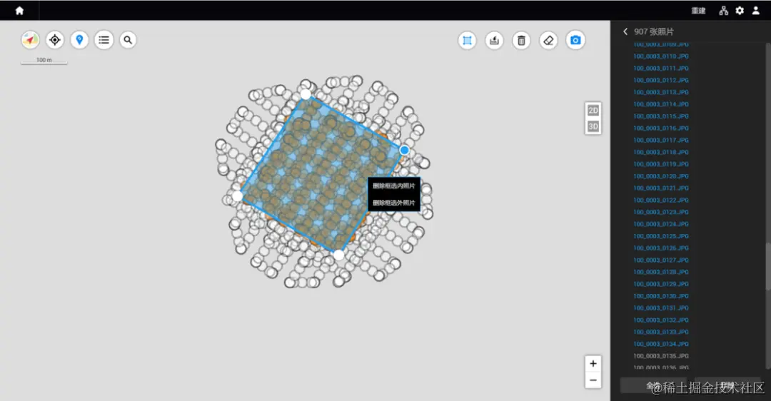 若需要保留或删减指定范围内的影像,可通过绘制框选区域功能,使用鼠标左键在地图上添加边界点以绘制框选区域。