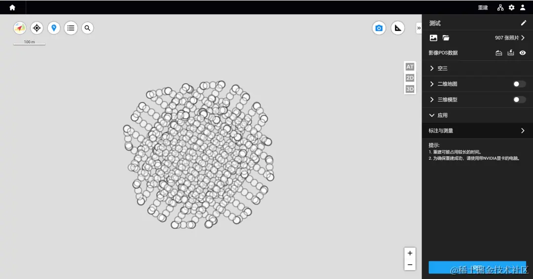 亦可切换至【AT】或【3D】视图下,查看三维空间下的相机点位的分布。