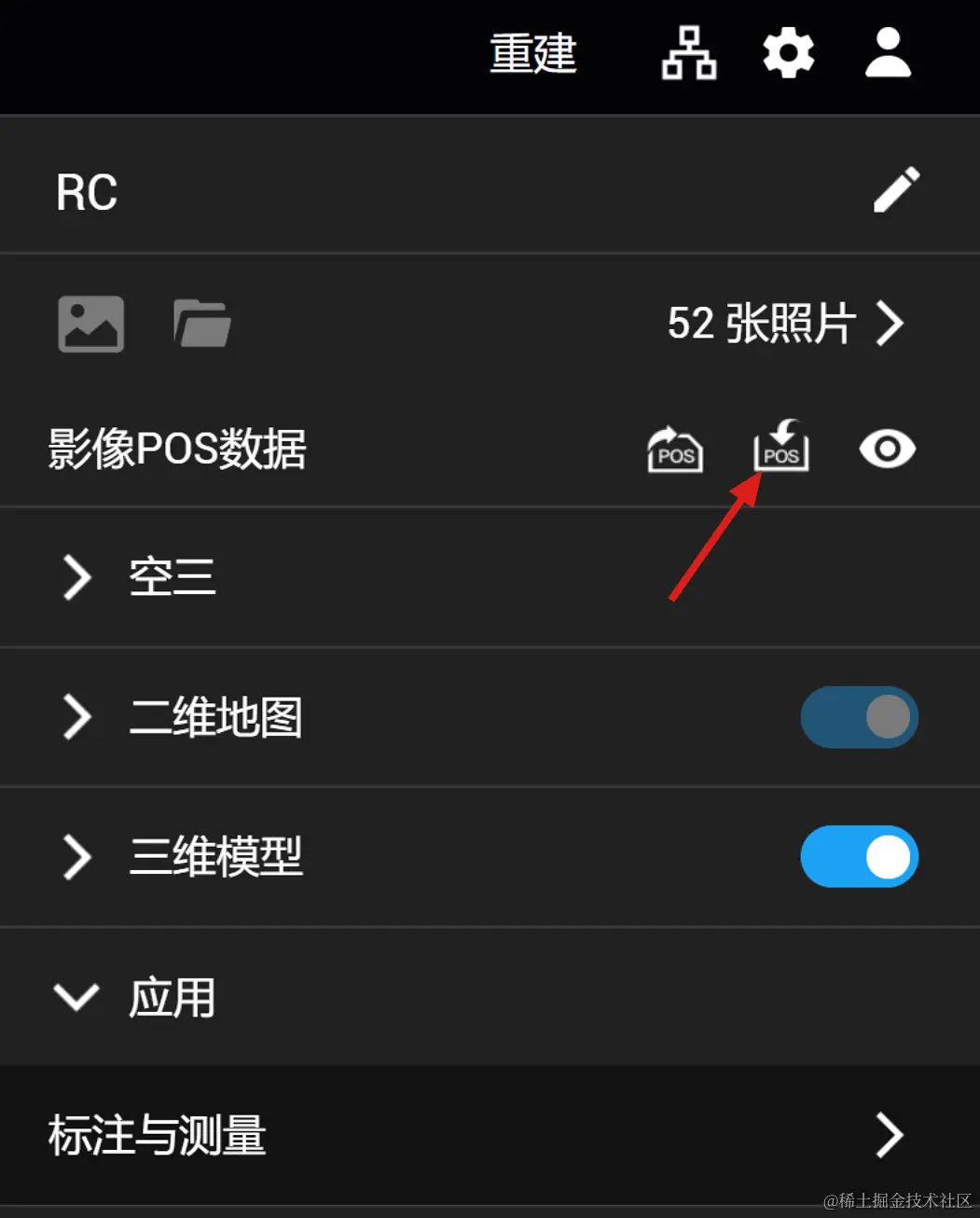 在进行重建之前需要将数据导入到大疆智图中,导入的数据包括影像及POS数据。使用大疆无人机及大疆负载(如P4R、P1等)采集的数据(影像中已经包含POS数据),无需进行数据处理,直接导入即可使用。