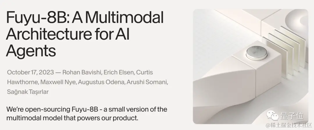 前言 最近多模态大模型是真热闹啊。这不,Transformer一作携团队也带来了新作,一个规模为80亿参数的多模态大模型Fuyu-8B。而且发布即开源,模型权重在Hugging Face上可以看到。