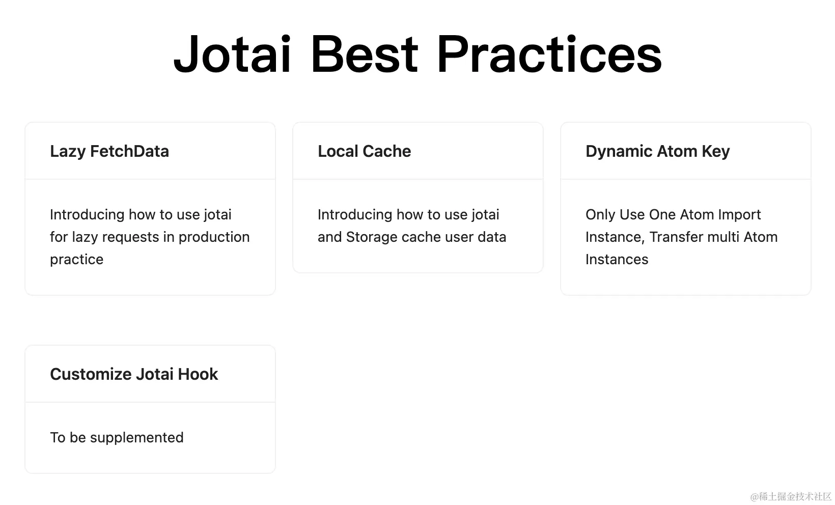早前,我们介绍了《从 Recoil 到 Jotai》 的迁移。其实随着迁移的过程中,也有着一些实践性的好方法,这里做一个总结提炼。
