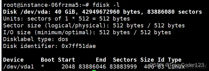 可以看到,这个分区只有一个40GB的vda分区。