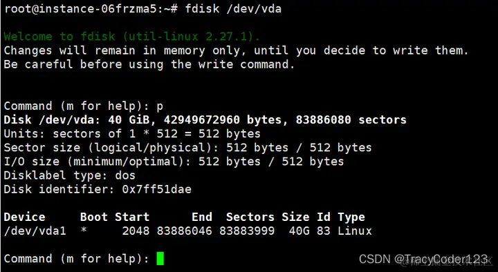 fdisk /dev/vda