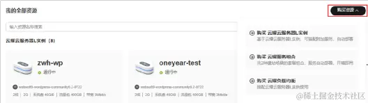 单击“购买资源”,在下拉列表中选择“购买 云耀云服务器L实例”或选择“购