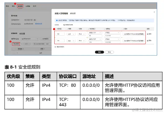 配置安全组的入方向访问规则,确保可以正常访问应用镜像。