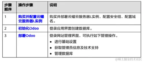 可以按照部署Odoo中的步骤,进行基础设置、获取管理员信息及技术支持、管理数据