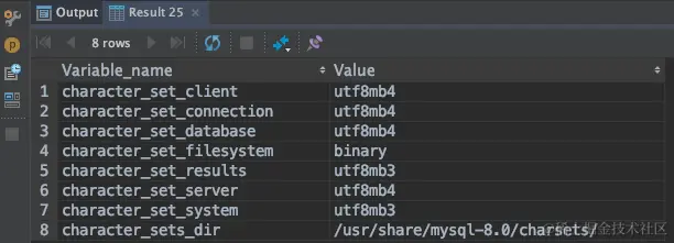 -- 查看字符集