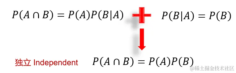 独立:独立是指两个事件之间没有因果或关联关系,即知道一个事件发生与否不会影响另一个事件发生的概率。如果事件 A 与事件 B 独立,则有: