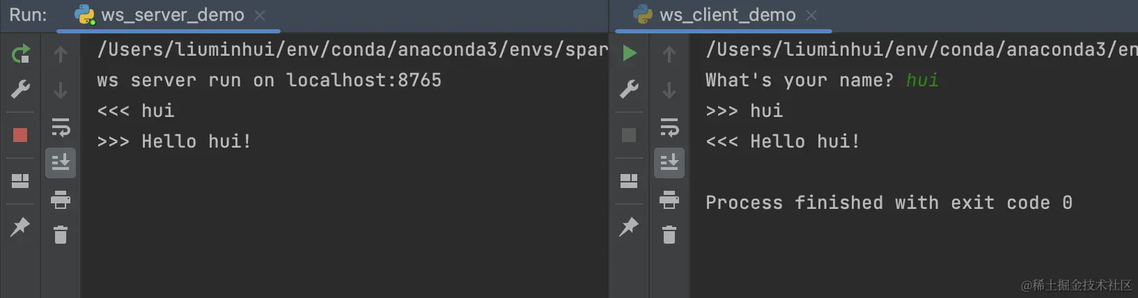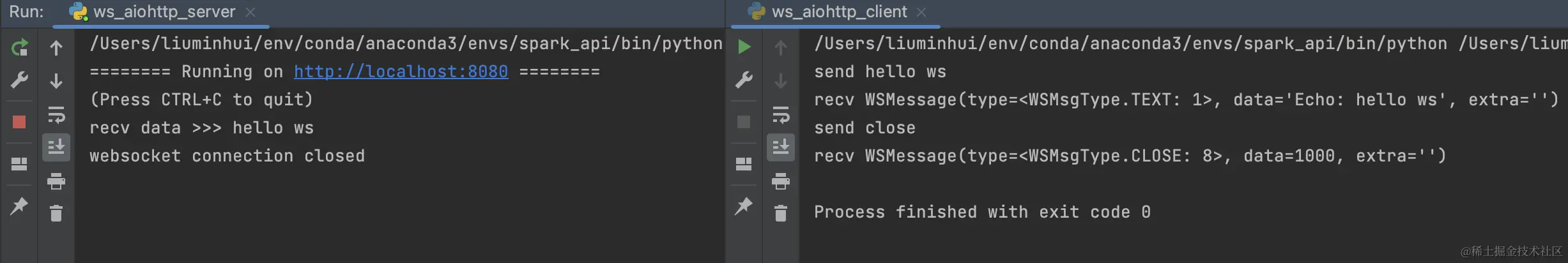 这里先展示下这两个库该如何发送websocket请求与处理响应。
