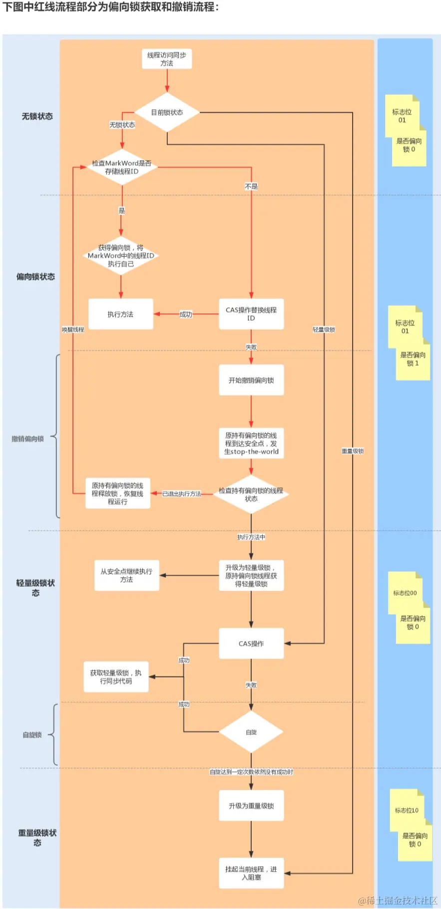 在JDK 1.6之前,synchronized只有传统的锁机制,直接关联到monitor对象,存在性能上的瓶颈。在JDK 1.6后,为了提高锁的获取与释放效率,JVM引入了两种锁机制:偏向锁和轻量级锁。它们的引入是为了解决在没有多线程竞争或基本没有竞争的场景下因使用传统锁机制带来的性能开销问题。这几种锁的实现和转换正是依靠对象头中的Mark Word