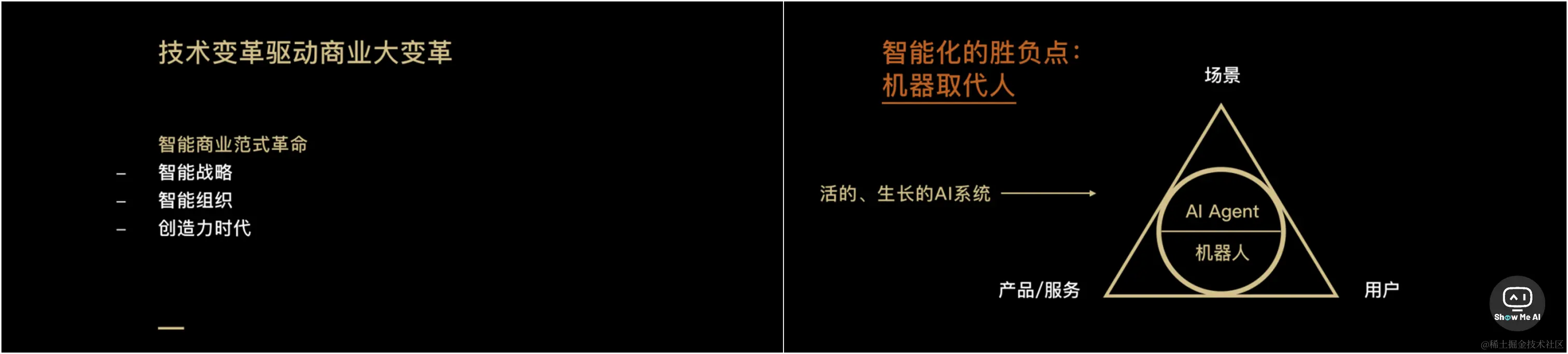 转型的关键在于机器能否取代人做决策,背后的核心能力是基于场景建立决策模型的能力,建立一个活的能学习、能生长的AI系统——AI Agent,智能商业会成为主流的商业范式