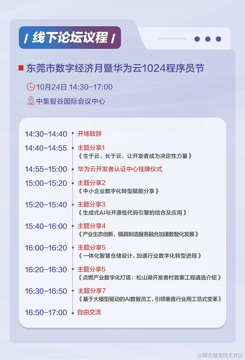 开发者是代码世界里的探索者,是产业创新的源头活水。10月24日,松山湖开发者村作为全球首个组织型开发者社区,将举办开发者特色活动,邀请华为技术专家解读行业发展趋势、分享华为云热门工具/解决方案、展示华为云优秀应用构建案例等。