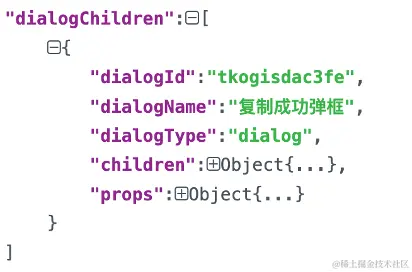 弹框:有时候会遇到较复杂弹框,弹框也可以触发另外一个弹框,弹框消失的时候会触发一个事件等等。在一个页面中可以有多个弹框,弹框的显示与消失具有复杂性。为了便于区分弹框与页面之间的关系,单独对弹框进行字段分离,其数据结构详见图8,图9为编辑态情况下配置样式。便于理解与问题定位dialogId开头是为tk。