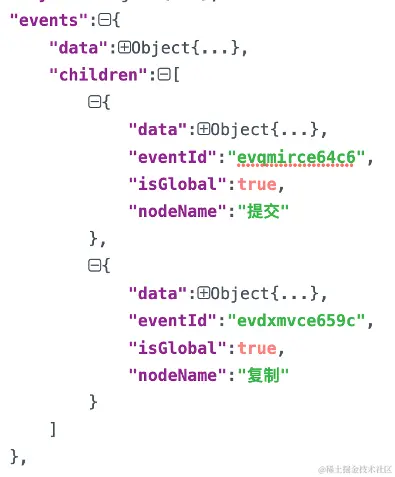 在图7中,可以看到事件eventId开头是ev,这样便于与api,弹框区分。页面中的所有事件放在events.children数组中。