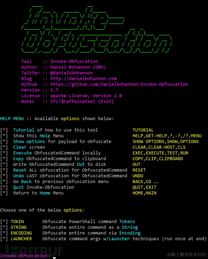 我们可以直接使用下列命令安装并调用Invoke-Obfuscation: