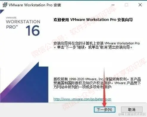 2.双击运行VMware_Workstation_Pro_16.0.0_Build_16894299_x64.exe文件,点击下一步。