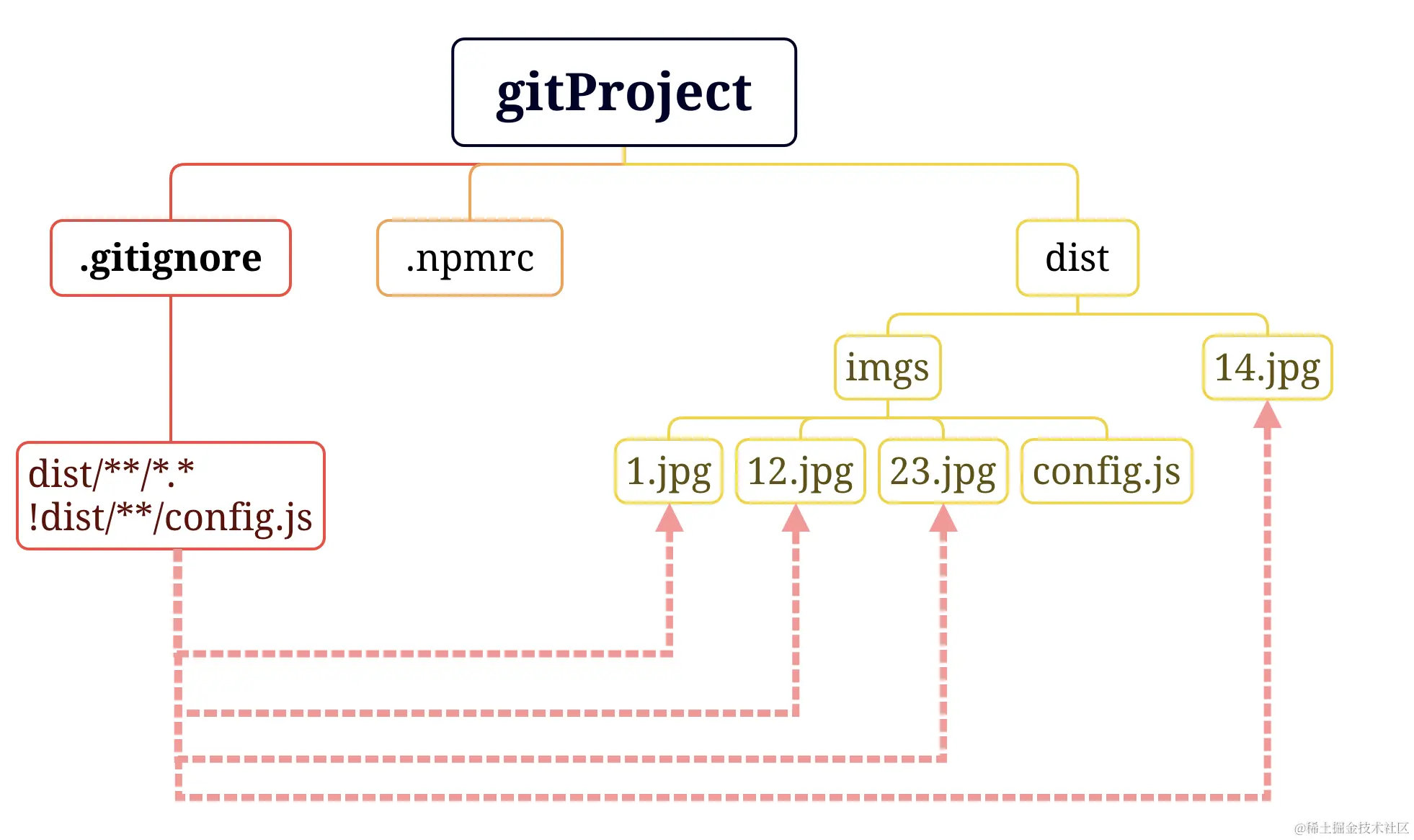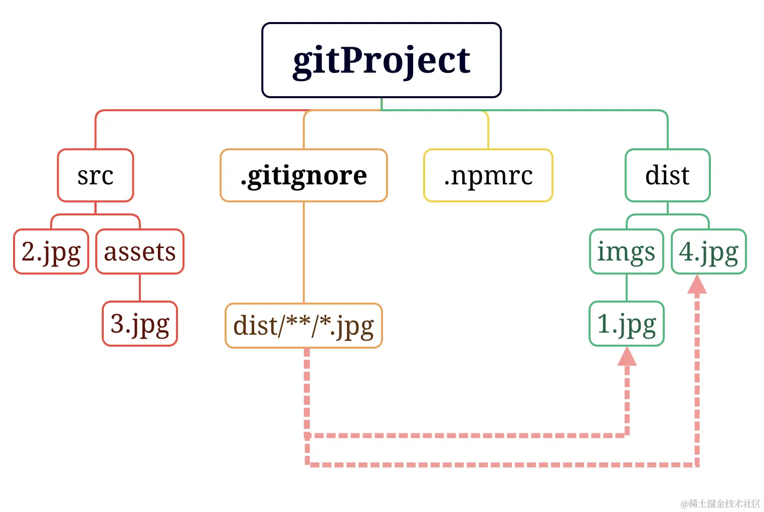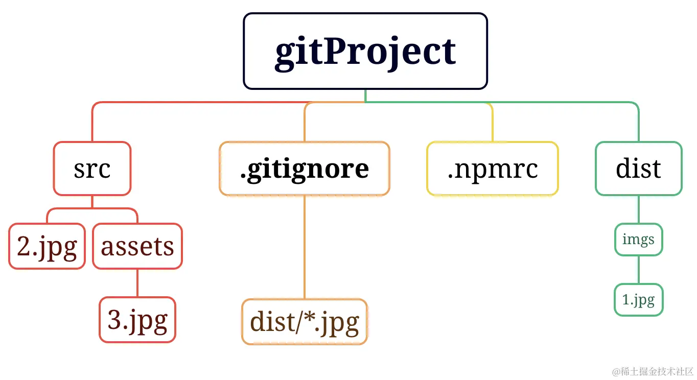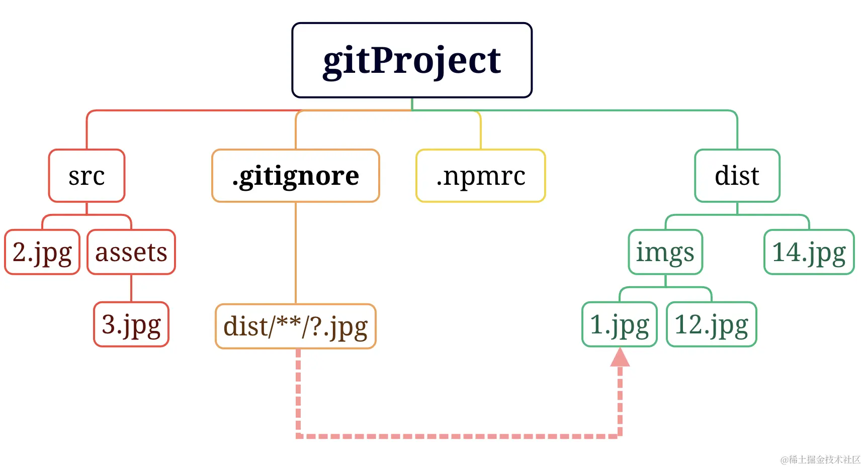 所以上面图中只会匹配到一个。如果我把.gitignore位置移动,再来看看,它就是这样了。