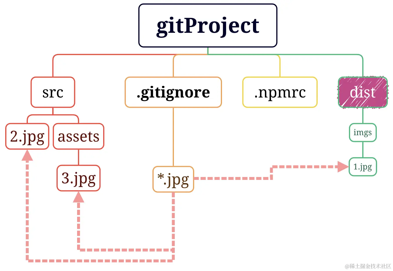 这个时候,它就会去匹配从.gitignore文件所在的位置出发,去找紧挨着目录层级的文件/文件夹