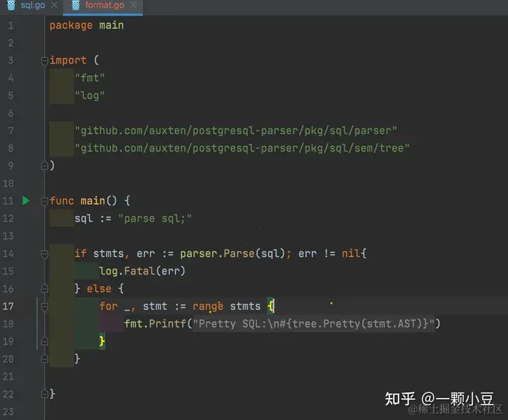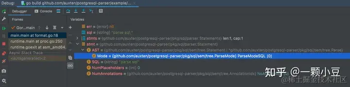 CRDB是GO语言生态中对PG语法兼容性较好的数据库,我们使用 postgresql-parser 项目作为基石,postgresql-parser 是从CRDB项目中抠出的parser模块,可以将sql语句转化为AST,具体参见项目介绍。