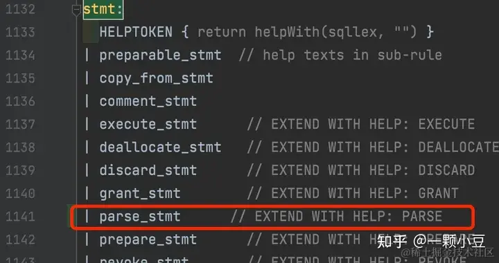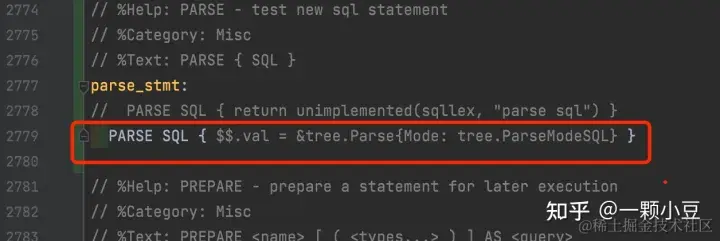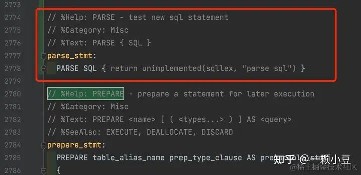 最后,为语句添加一个处理规则,sql.y中搜索 "// %Help: PREPARE" 并添加如下规则: