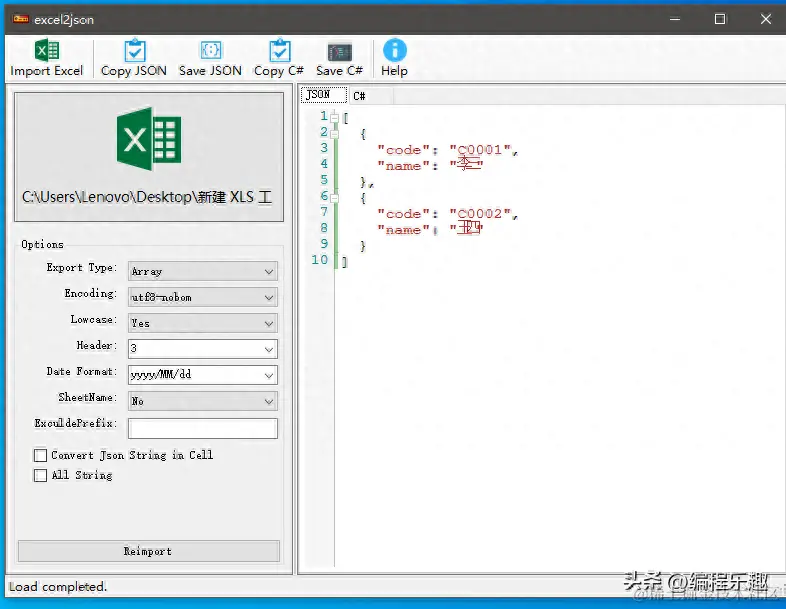 10、一个基于C#开发的Excel转Json工具