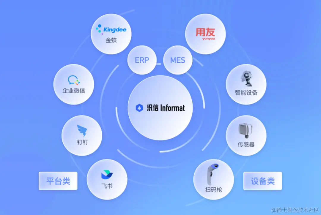 除了敏捷协同这项挑战外,制造业还经常会面临复杂的业务流程和各类业务系统,这更像是一张庞大的网。在织信之前对接过的大型制造企业中,有不少都会围绕办公、生产车间制造研发、供应链上下游、采购、仓储、运输等环节陆续采购多套软件系统。但是这些软件由于供应商不一,往往不具备互相贯通的能力。因而系统打通集成,也成为了制造业数字化建设面临的典型挑战。