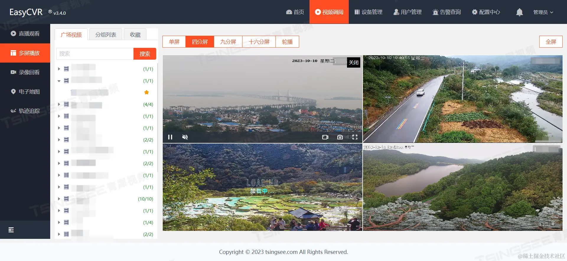 视频集中存储/云存储/视频监控管理平台EasyCVR能在复杂的网络环境中,将分散的各类视频资源进行统一汇聚、整合、集中管理,实现视频资源的鉴权管理、按需调阅、全网分发、智能分析等。AI智能/大数据视频分析EasyCVR平台已经广泛应用在工地、工厂、园区、楼宇、校园、仓储等场景中。感兴趣的用户可以前往演示平台进行体验或部署测试。