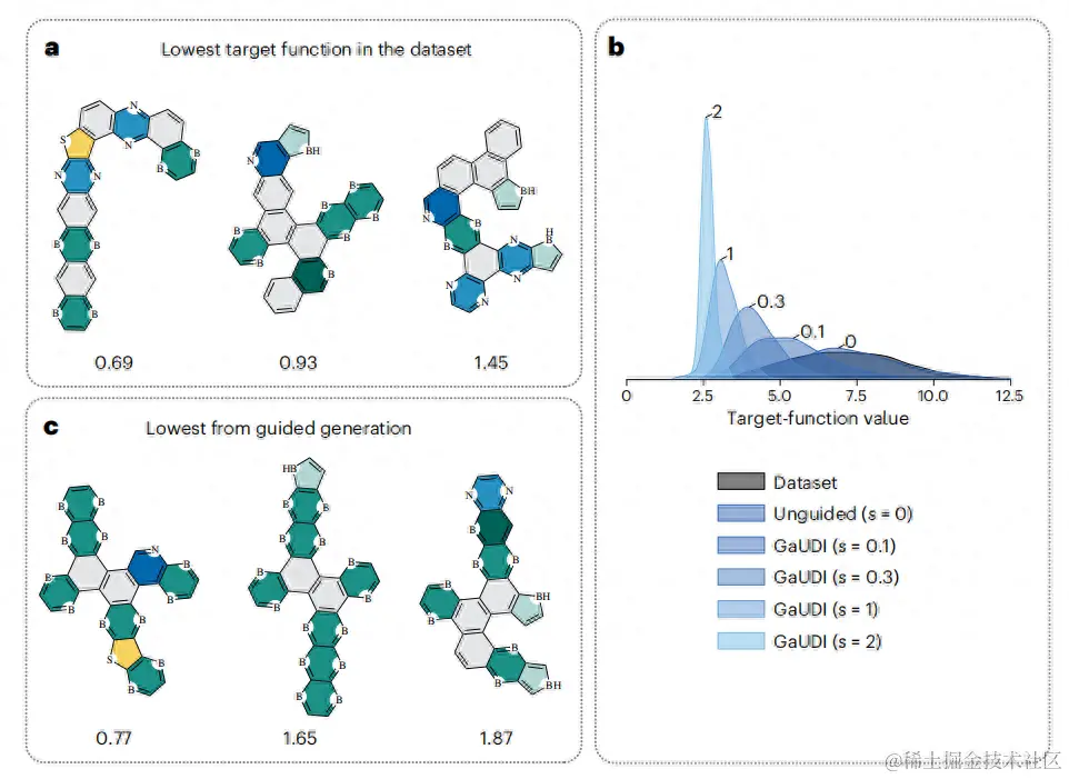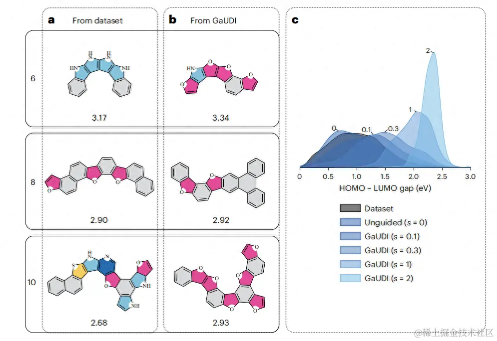 GaUDI 能够提出具有所需特性的新分子,甚至超出初始训练集中的特性,有助于加速许多感兴趣领域的分子设计和发现,包括但不限于有机电子学和光电子学。