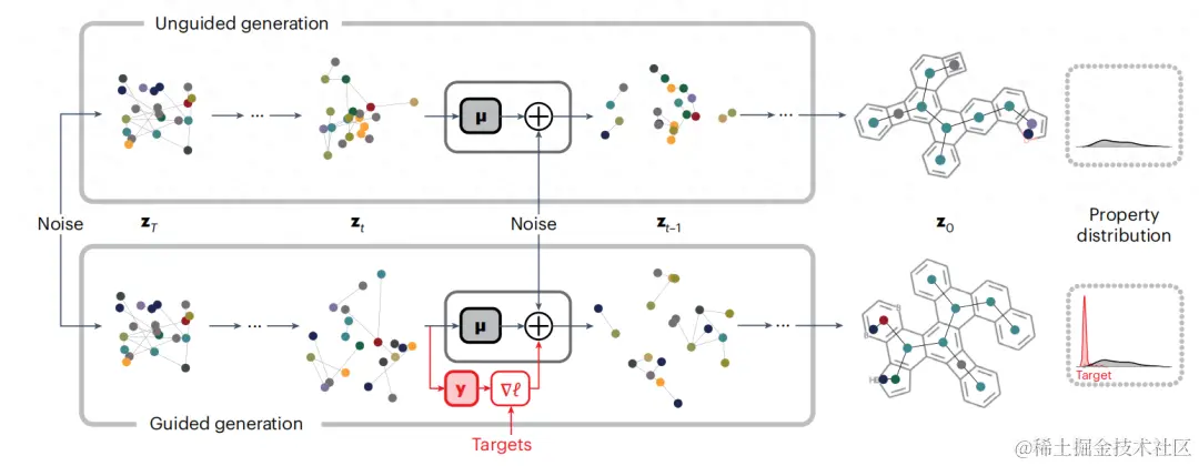 研究人员使用两个预训练模型来设计分子:第一个是经过训练的生成扩散模型,用于根据给定的数据分布生成无条件样本,第二个是经过训练的预测模型,用于预测分子特性。