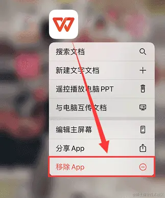 您也可以直接在手机桌面上进行操作,只需要长按想要删除的软件,然后在弹出菜单栏中点击【移除App】按钮就可以了。