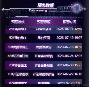 深度集成电力、环境、电能质量等监控系统,联动后台接入真实数据,通过 UI 动态图表对设备位置、类型、数量等作业信息进行多维度分析。赋能管理者对岸边桥体面板施工的吊装过程、施工进度、设备健康等业务全域态势感知。即使远程监管也能清晰知晓当前工况的实时状态。