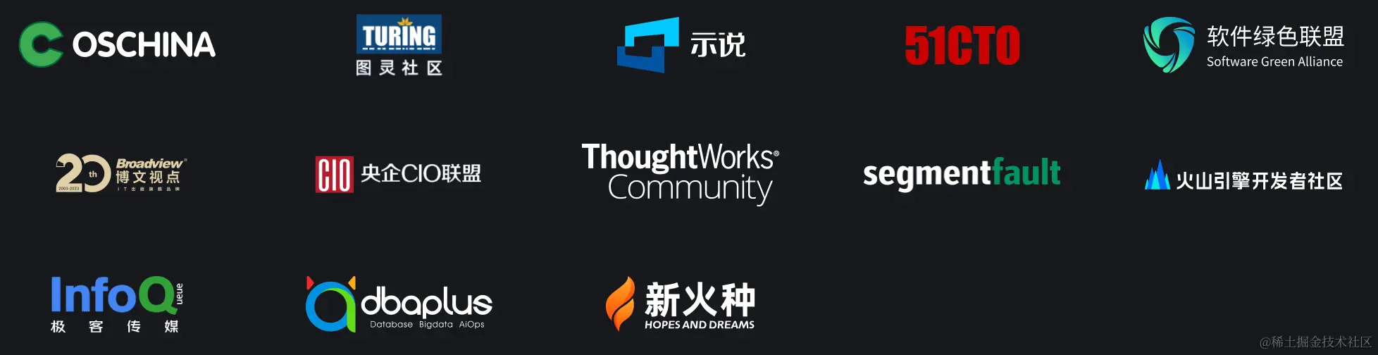 本次大会有幸得到了众多开发者社区、组织与企业的大力支持,具体社区名录如下图所示。