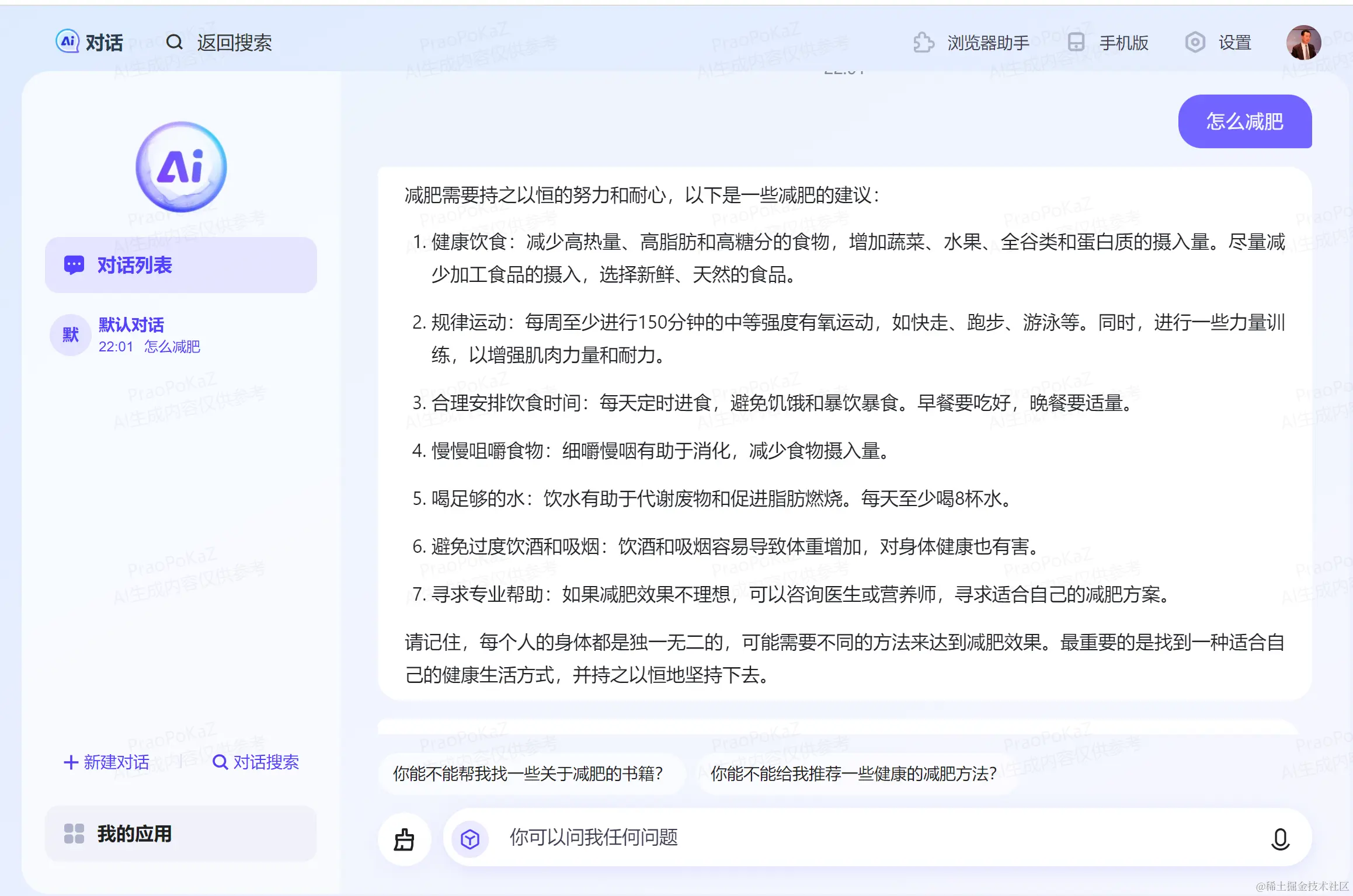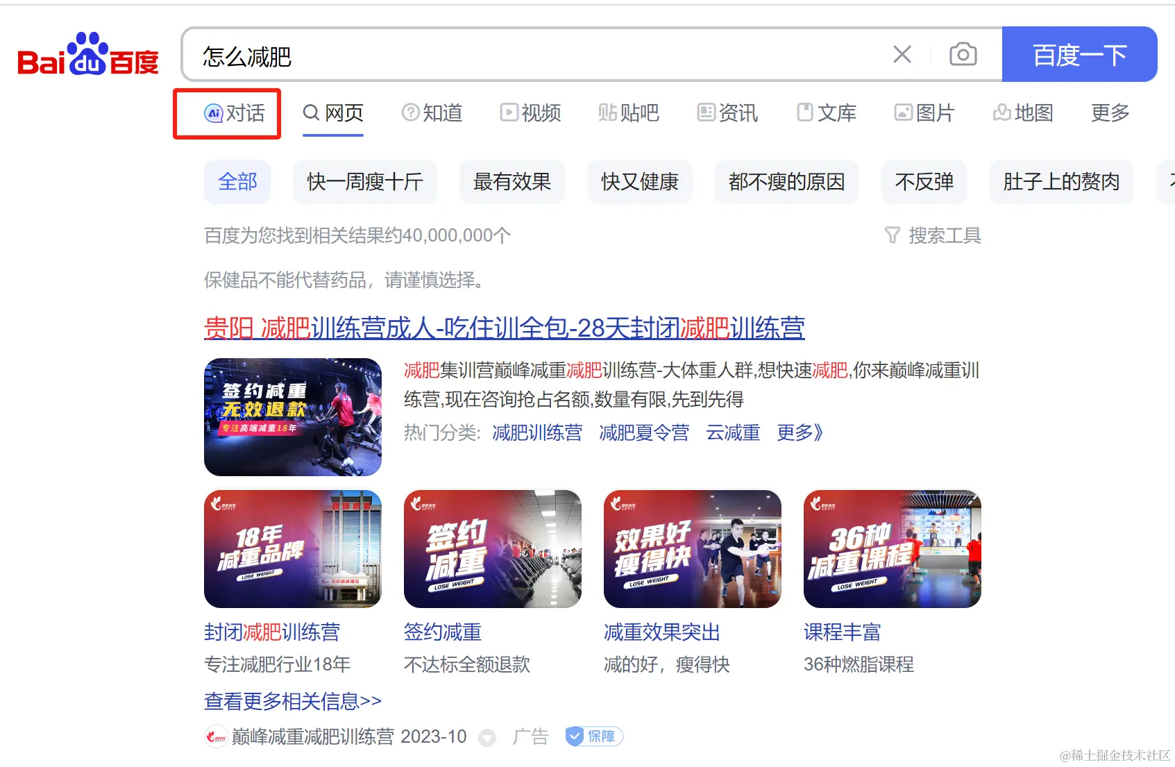 下面是百度的搜索,我们发现增加了一个AI对话。