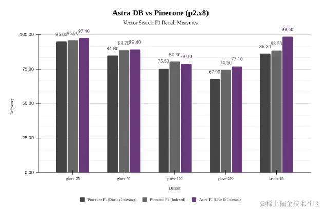 Astra DB 保持更高的召回率和精确度: