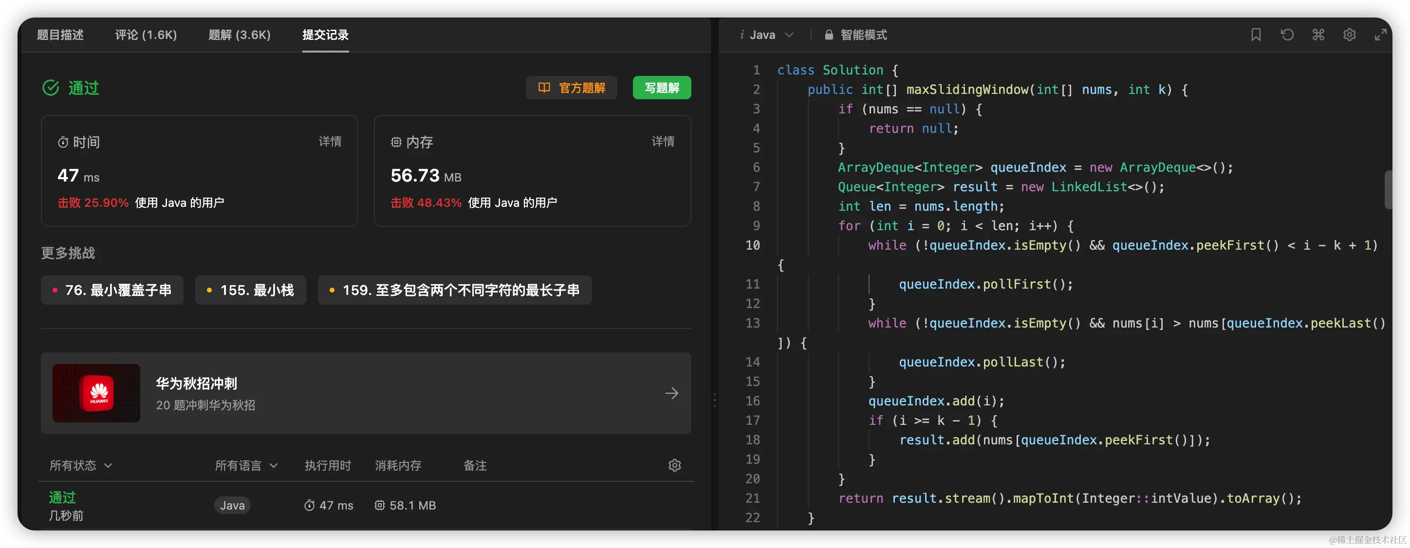 - 空间复杂度:O(1),只有subMax一个额外变量