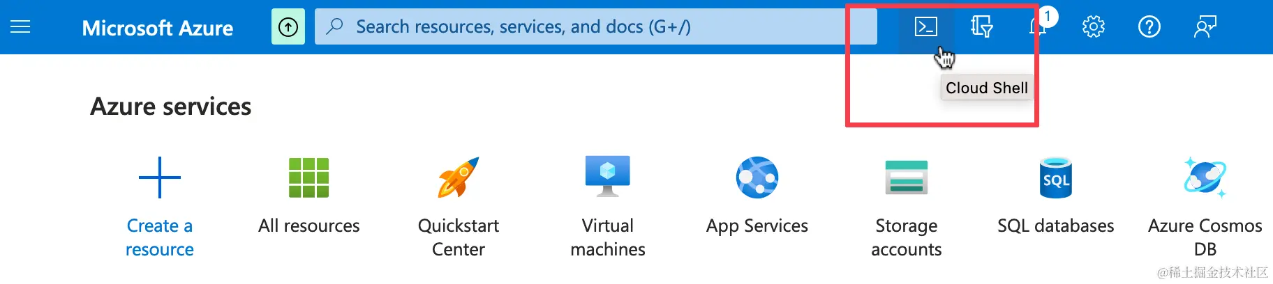 - 在 Azure 门户中,单击门户顶部的 Cloud Shell 图标以打开 Cloud Shell...