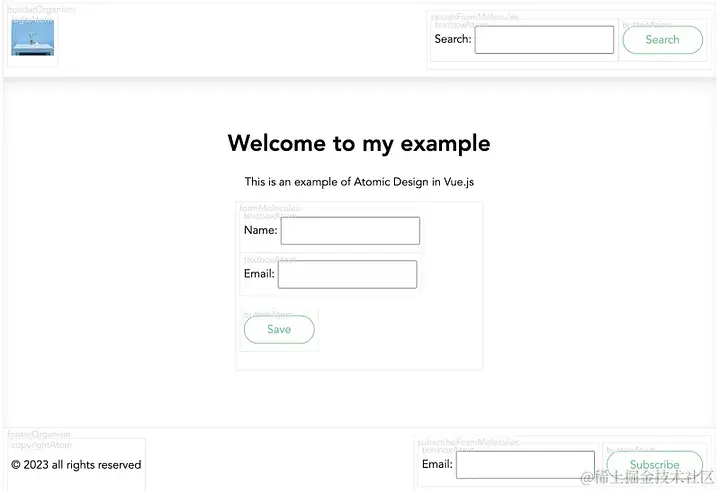 Organisms是形成 UI 不同部分的分子组合,例如页眉、页脚、侧边栏和内容块。在 Vue.js 中,可以通过将分子组合为布局组件中的子组件来创建生物体。