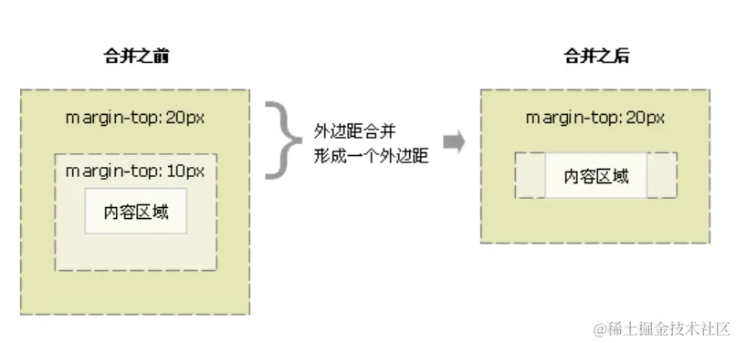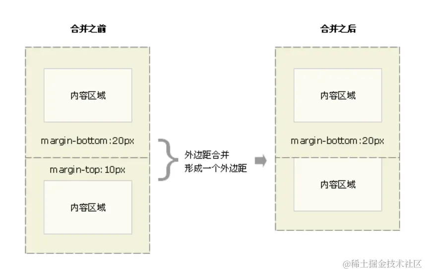 两个垂直的相邻的块级元素,当上下两个边距相遇时,其外边距会产生重叠现象,切重叠后的外边距,等于其中较大者。(tips:水平方向不会发生)