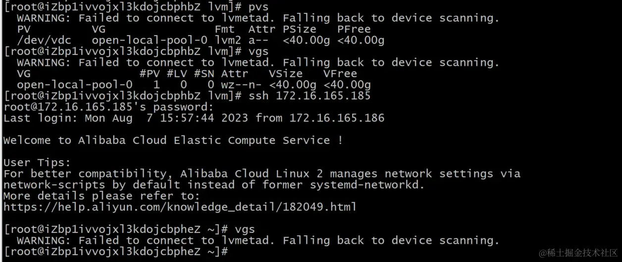 186已经创建了vgs,185因为已经有了文件系统,所有没有创建vg