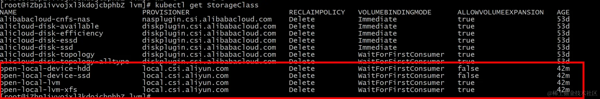 查看有哪些纳管到了open-local