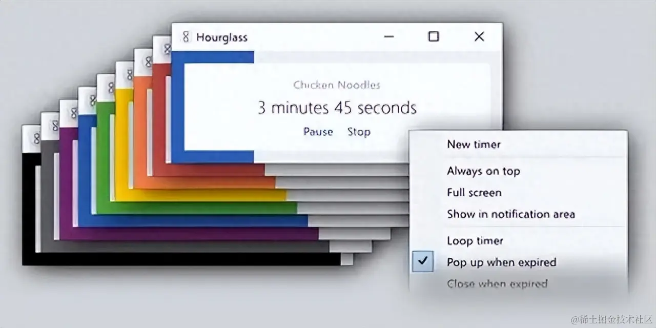 Hourglass 是一款简洁优雅的计时器软件,可以帮助用户管理时间和提醒事项。Hourglass 可以设置倒计时或正计时,还可以设置重复提醒或定时关机等功能。Hourglass 有着清晰明了的数字显示和漂亮的沙漏动画,还可以自定义字体、颜色和背景等样式。Hourglass 还支持键盘快捷键和命令行参数,让用户可以更方便地控制计时器。