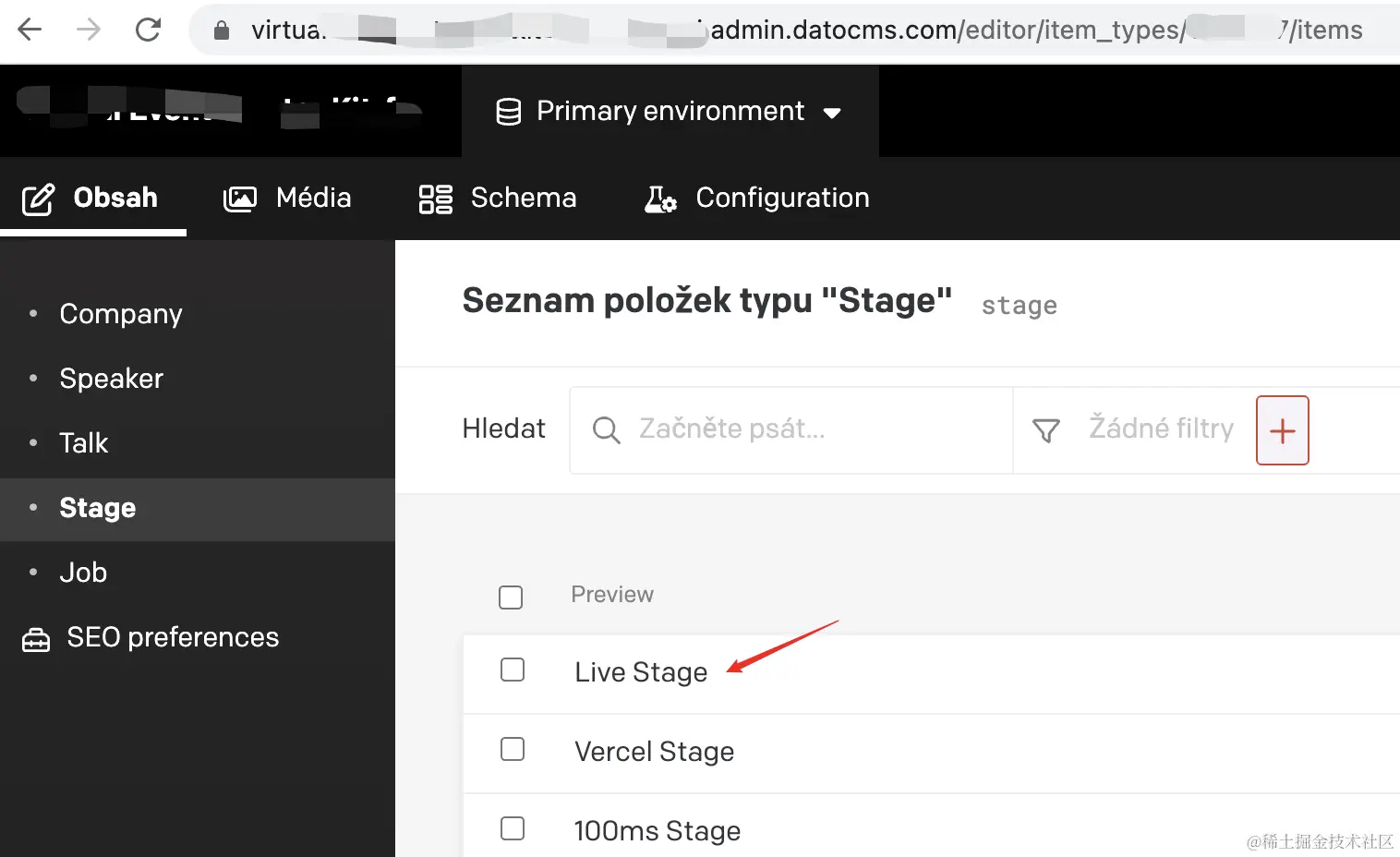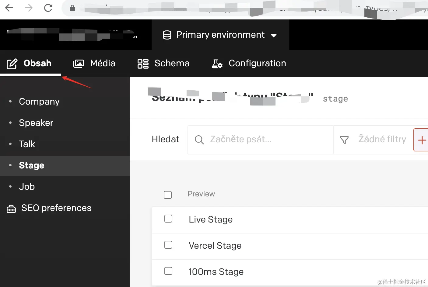 在DATOCMS中,可以从Obsah中看到项目所需的数据。