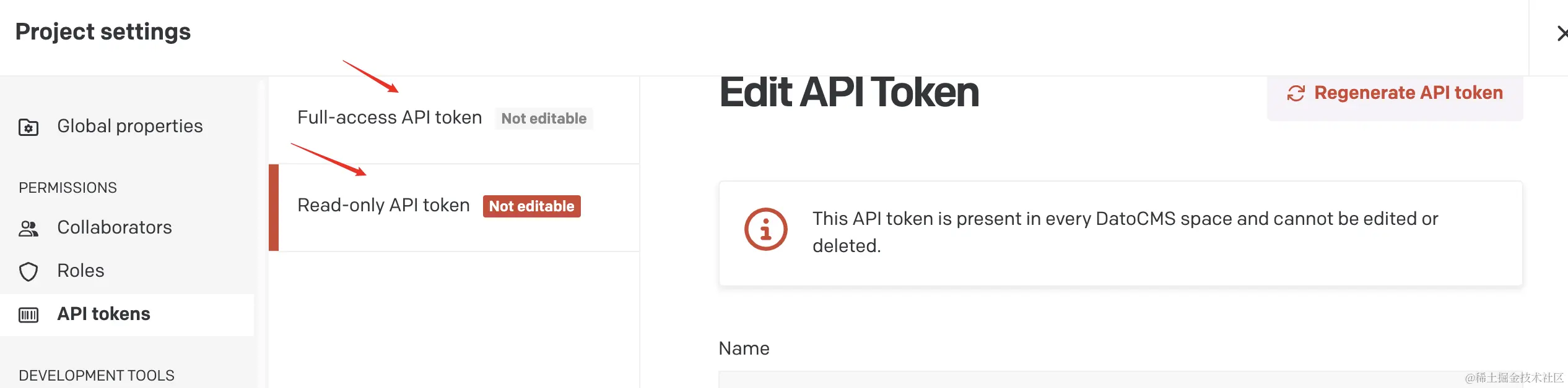 前面成功部署到Vercel后,就可以在DATOCMS中看到对应工程配置,如下图,里面存有项目需要的数据。其中Read-only API token就对应着项目的.env.local中的DATOCMS_READ_ONLY_API_TOKEN变量值,也是前面所述的部署Vercel成功后的获取配置值中的一个。